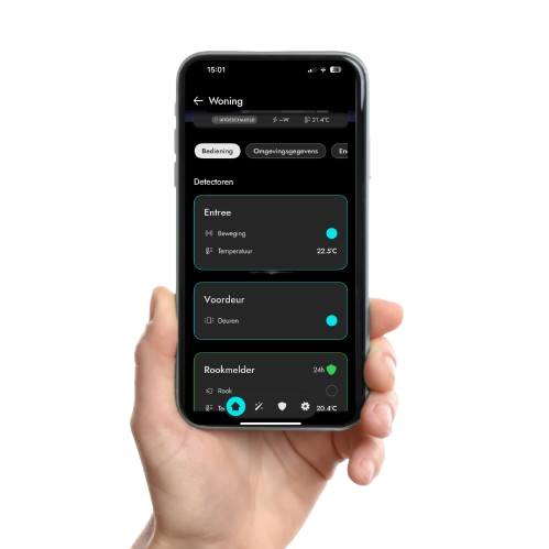 We hebben een eenvoudig en effectief systeem ontwikkeld dat u gemakkelijk kunt bedienen via de gratis smartphone app en kan activeren. Op die manier kun u niet alleen binnen, maar ook buiten uw woning veilig zijn. Het systeem kan ook uitgebreid worden met brandmelders en de eerste tekenen van brand detecteren.
